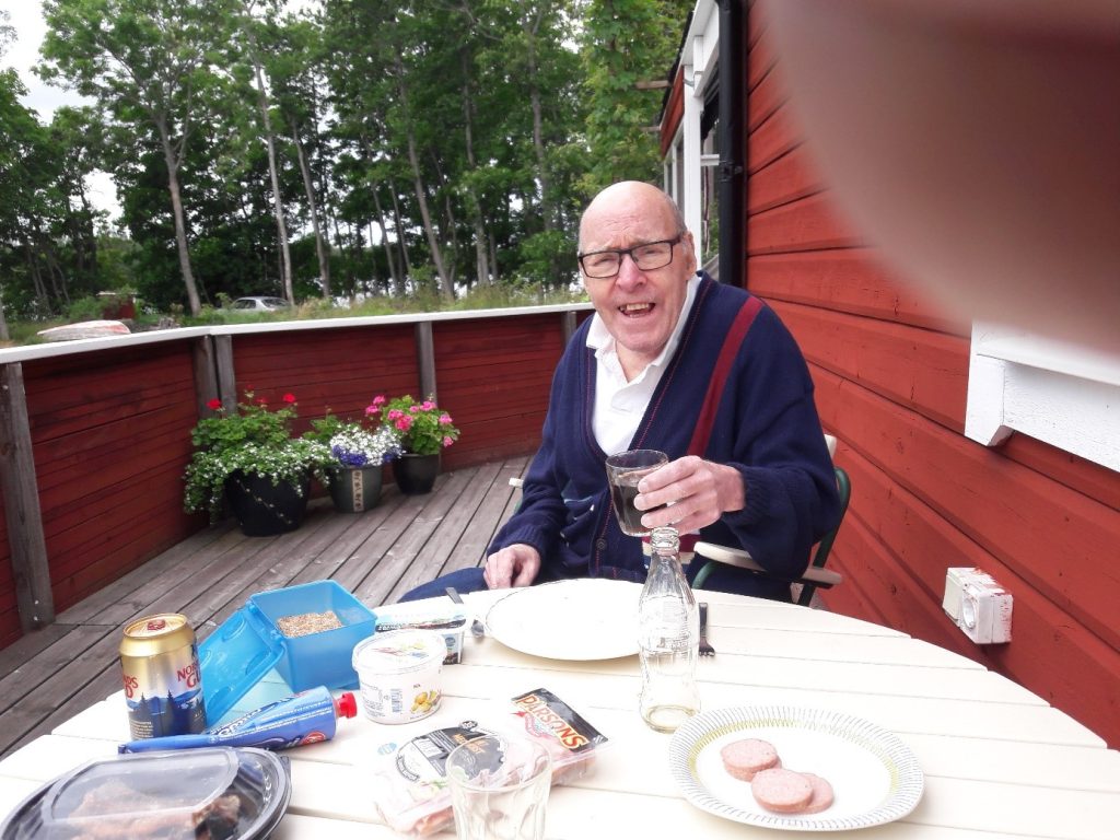 En mycket rolig händelse bjöds jag på denna gång. Monika, ett barnbarn, som numera äger gården med sjöbod hade fest. Hennes dotter fyllde 20 år och de hade bjudit in släkten. Jag blev också inbjuden. Några kände jag igen. I vilket fall blev jag ordentligt utfrågad om hur det var förr, -40 talet och framåt. Det var trevligt och kul för mig.
